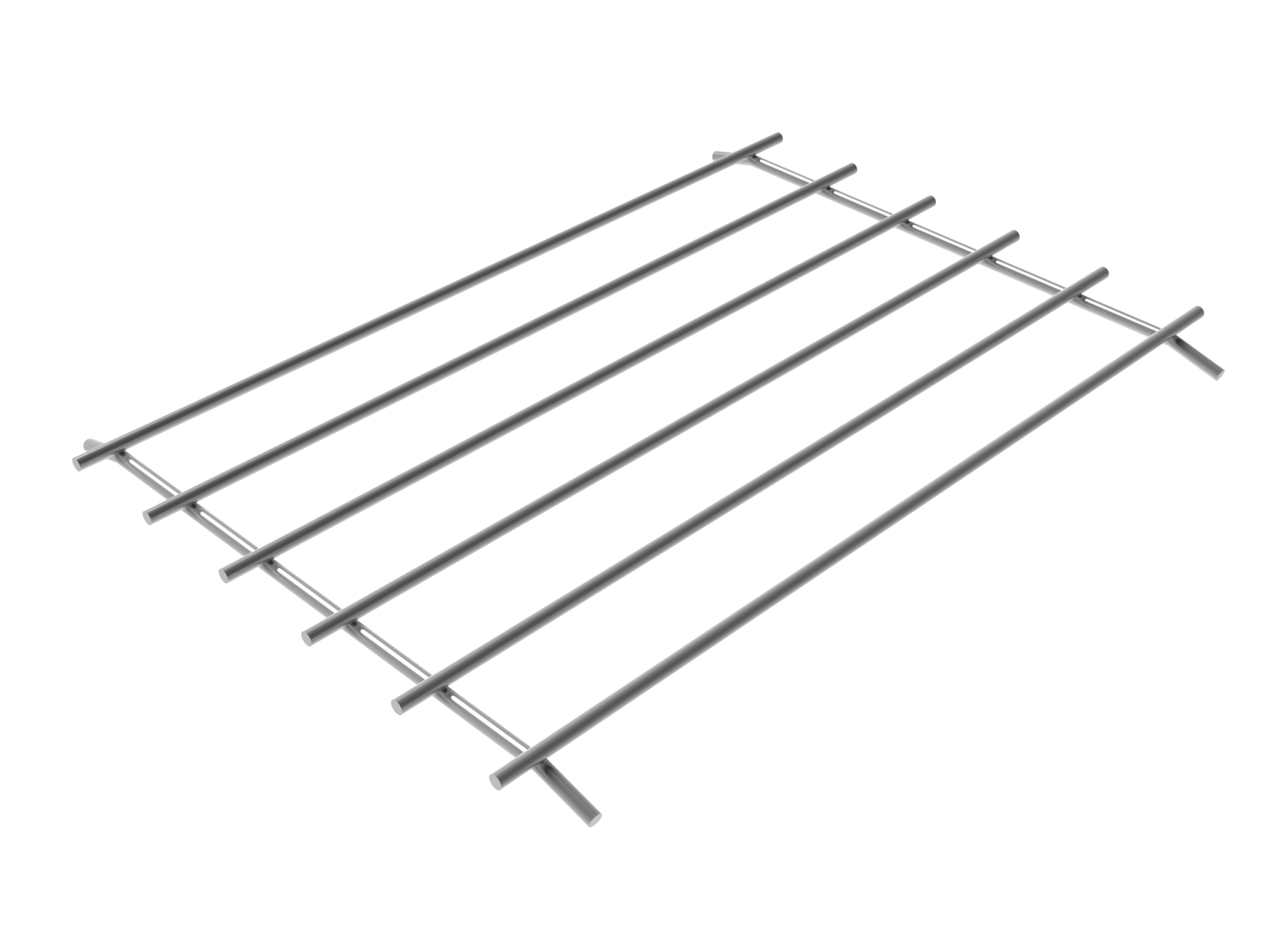 The shelving shelves are made from stainless steel rounded profile D8 mm.